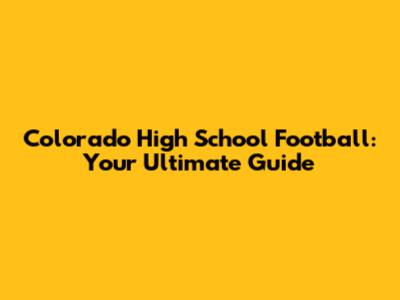 Colorado High School Football: Teams, Rankings, And More