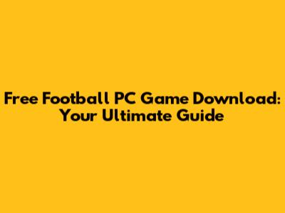 Free Football PC Game Download: Your Ultimate Guide
